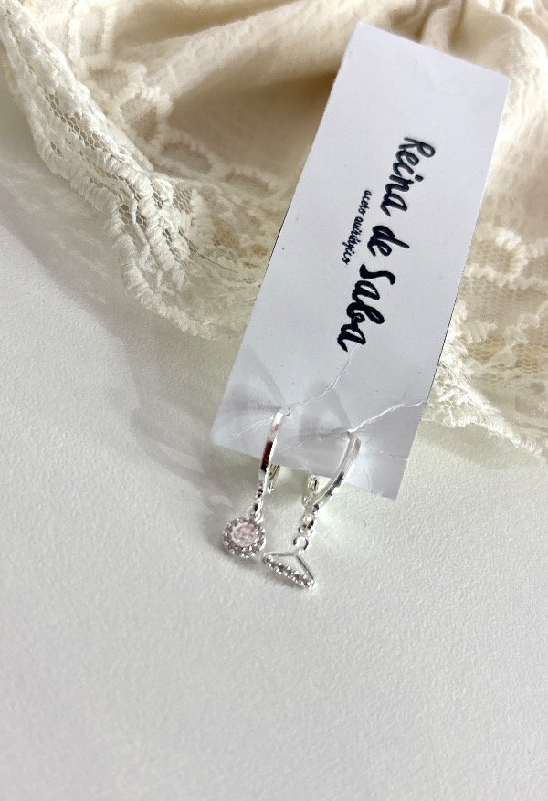 Argollitas con dije percha y botón , de acero quirúrgico blanco y strass