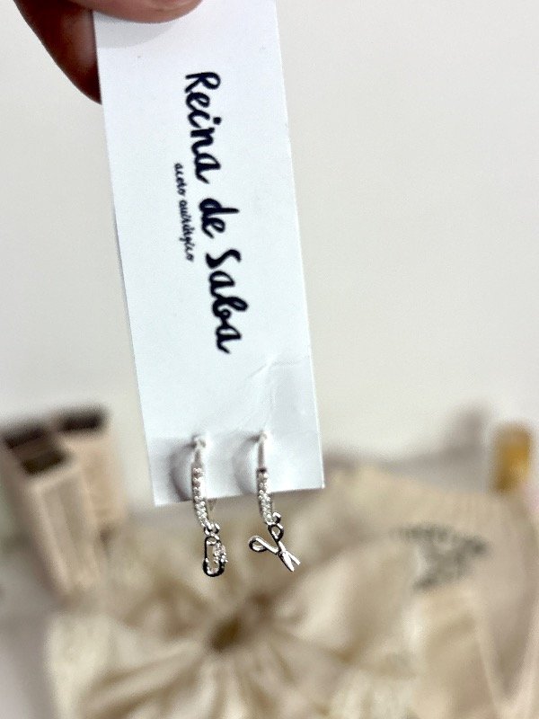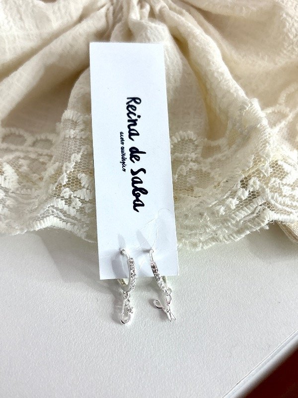 Argollitas con dijes de tijera y alfiler de gancho . Hechos en acero quirúrgico blanco y strass