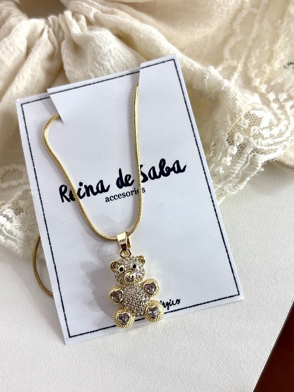 Collar con dije de Osito , hecho en acero quirúrgico dorado con strass