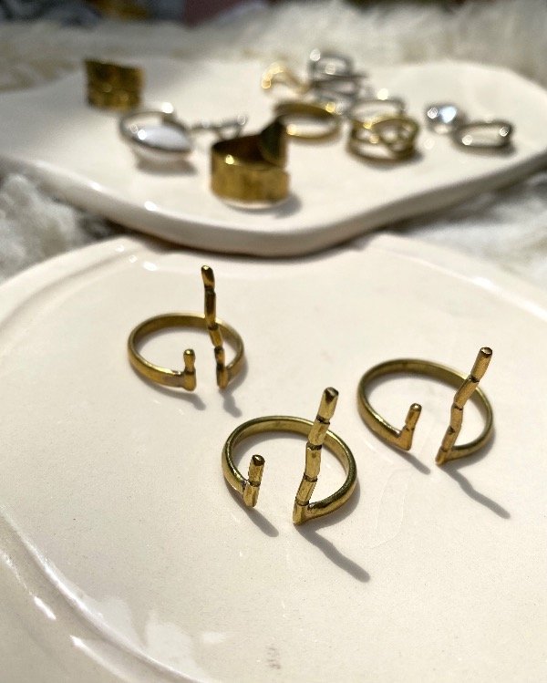 Anillo de bronce regulable , no se oxida ni pierde color. Para limpiarlo podes usar un paño .