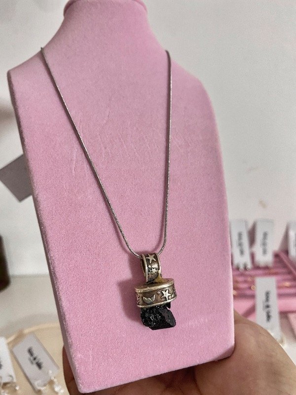 Cadena de acero quirúrgico, dije de alpaca y piedra natural .