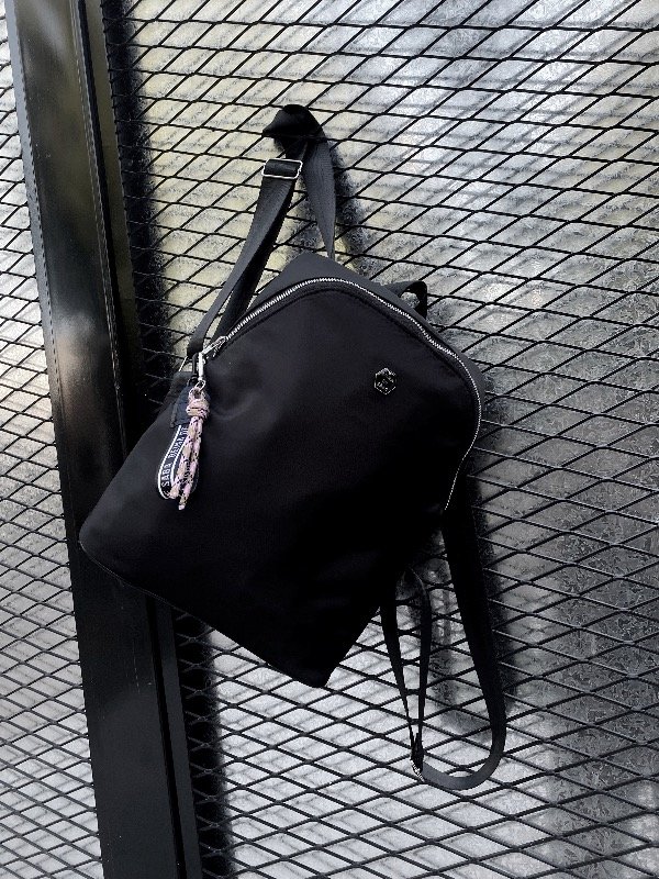 Mochila Jackie está hecha en lona reforzada , tiene cierre metálico YKK y viene con dos llaveros de regalo, su interior es de silver negro .